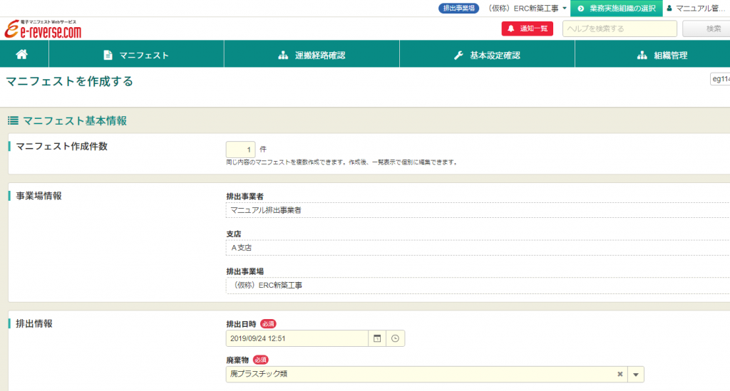 「マニフェストを作成する」に進むと、すぐ入力できるんだ。