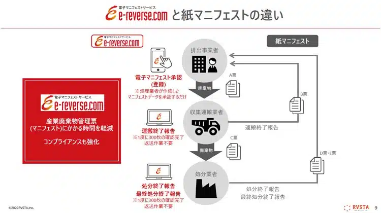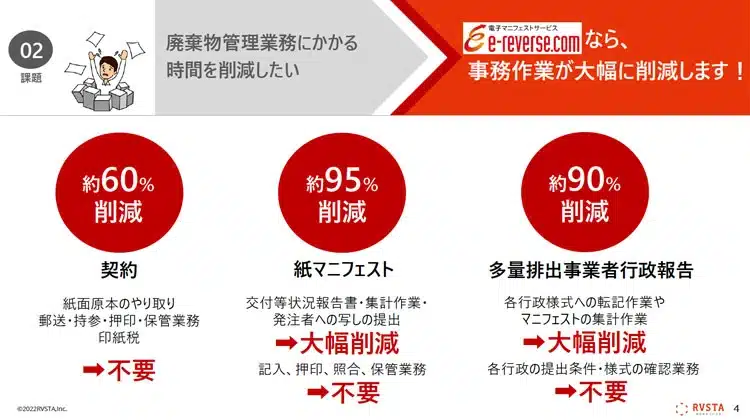 「産廃管理業務をラクにしたい」方に向けて、e-reverse.comの概要はもちろん、管理業務の課題や解決方法、紙マニフェストやJWNETとの違いなど、充実した情報をご紹介しています。ぜひご覧ください。