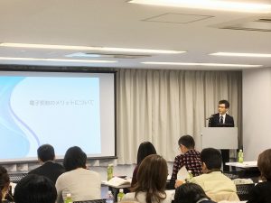 er-contractの概要説明を資料に基づき、ご説明をいたしました。er-contractを導入・活用する事により、どのようなメリットがあるのかをご理解頂ける内容となりました。