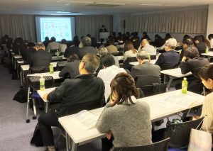 関西地方での前回の説明会から二年が経過し、多くのお客様にご来場いただいた感謝の言葉を述べ、更に多くのユーザー様にご利用頂けるよう改修を進めていること、説明会にてより多くの内容を吸収していただき導入の契機になればとの挨拶で開会いたしました。