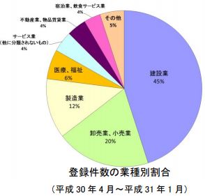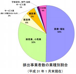 電子マニフェストを導入されている団体及び企業の半数以上が医療・福祉系で、建設業はわずか5%ですが、マニフェスト登録数は全体の約半分を建設業が占めております。