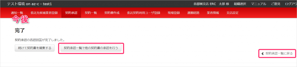 契約承認または否認を行った後に表示される「承認完了画面」および「否認完了画面」から続けて契約の確認・承認操作ができるようになります。