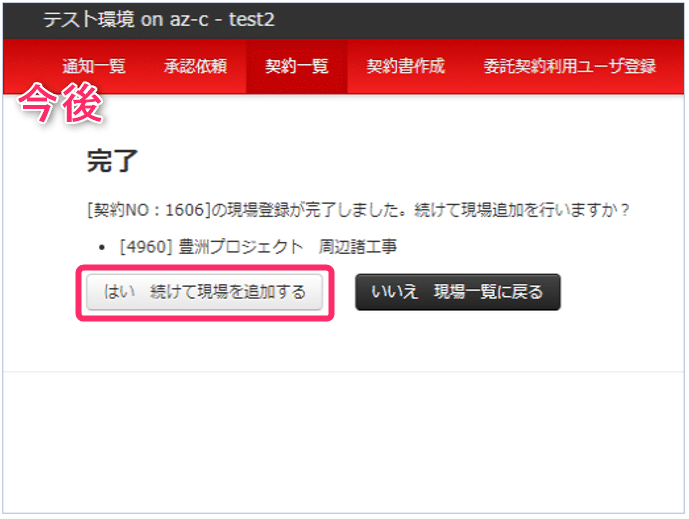 また、【はい 続けて現場を追加する】から「現場追加画面」へ戻った時に検索条件と検索結果を維持することで連続した操作を行いやすくなります。