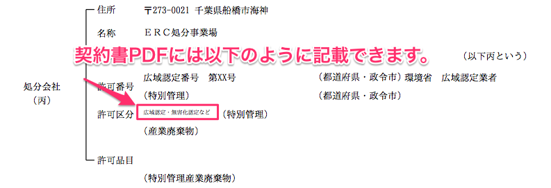 ・契約書作成において運搬先の処分場の許可証区分に「広域認定・無害化認定など」を追加します