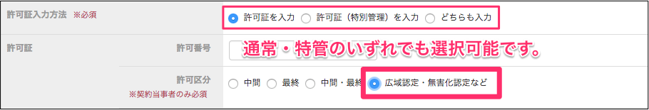 ■契約書作成において運搬先の処分場の許可証区分に「広域認定・無害化認定など」を追加します