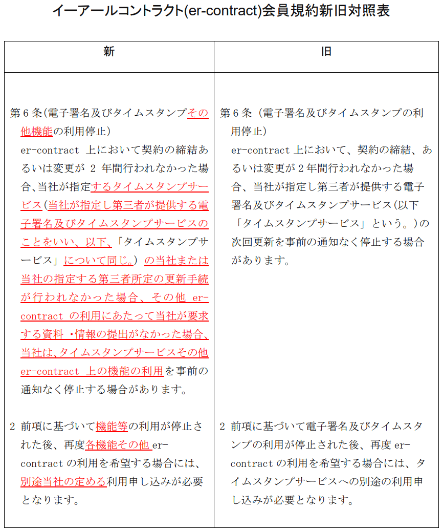 改定後のイーアールコントラクト(er-contract)会員規約の内容については、下の新旧対照表をご確認ください。