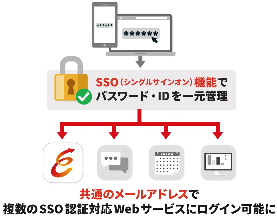 SSOを実現する仕組みの一つとして、多くのSSO製品で採用されている認証方式です。ご利用中のシステムにID・パスワードでログインすることによりe-reverseへのログインはメールアドレスだけでログインできるようになります。