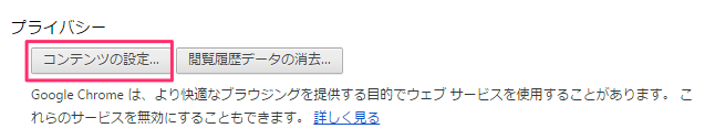 2. プライバシー項目の「コンテンツの設定」を選択します