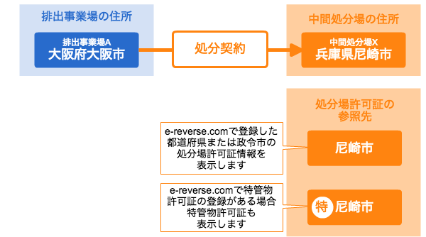 ・e-reverse.comで特管物の許可証登録がある場合、処分場住所と合致する特管物の許可証情報