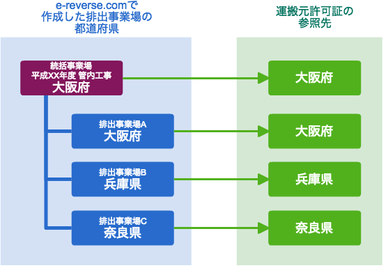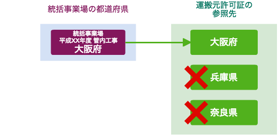 統括事業場「平成XX年度 管内工事」の運搬元許可証の参照先