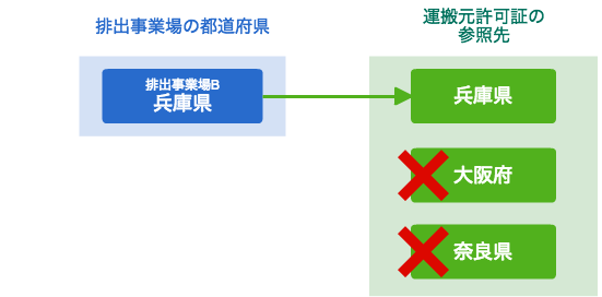 排出事業場「排出事業場B」の運搬元許可証の参照先