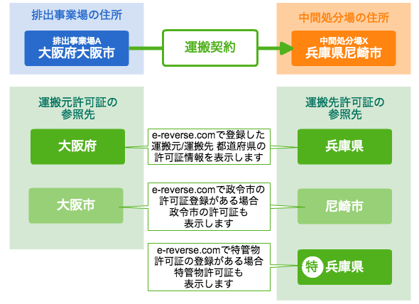・e-reverse.comで特管物の許可証登録がある場合、運搬元/運搬先住所と合致する特管物の許可証情報