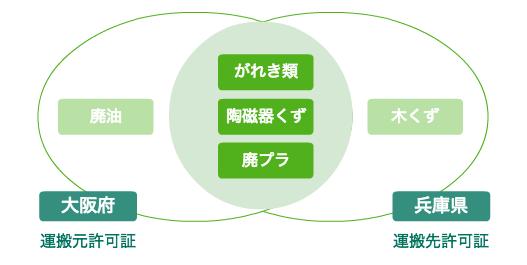・運搬元/運搬先の許可証双方に記載のある共通の廃棄物