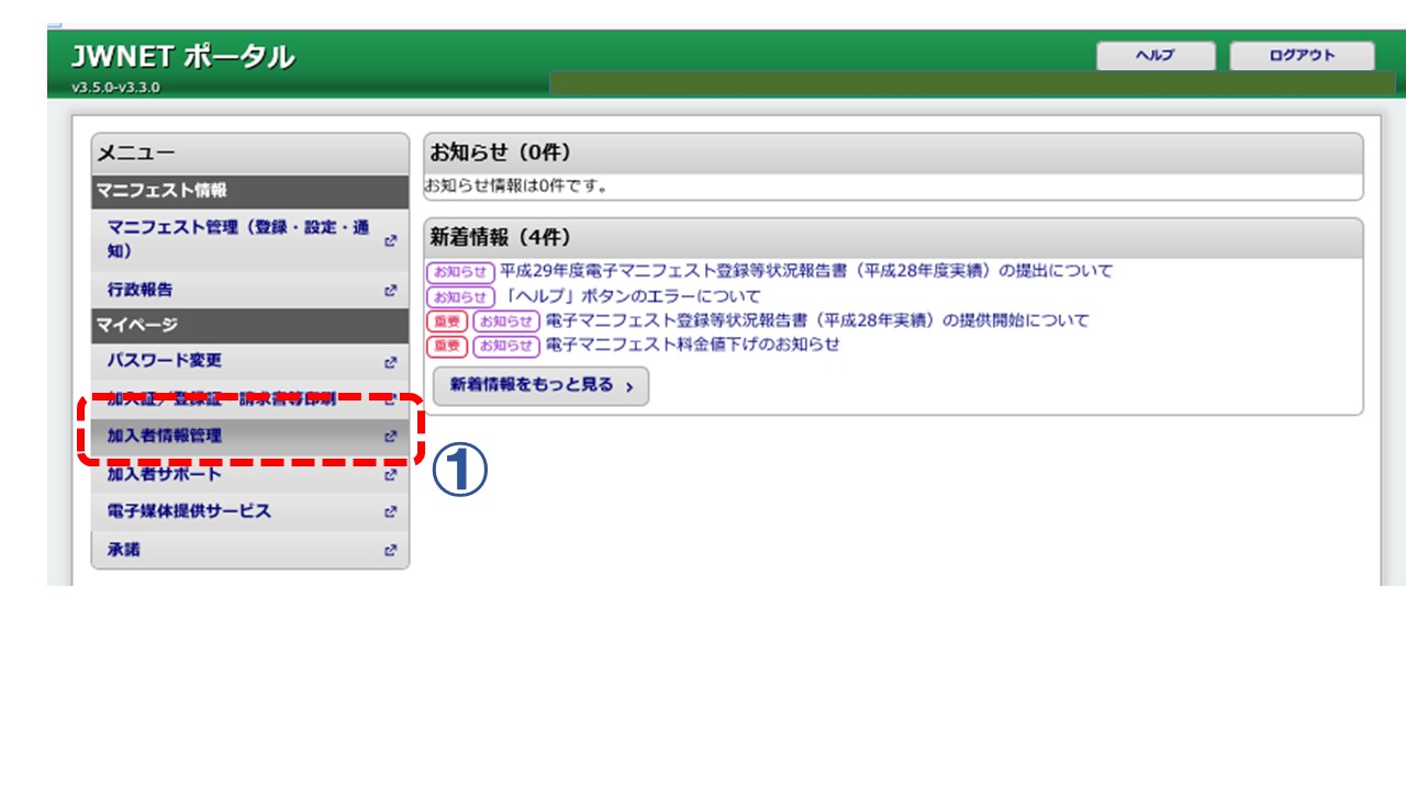 なお「加入者情報表示」ページでは加入者番号や公開確認番号(収集運搬・処分業者のみ)も確認できます。