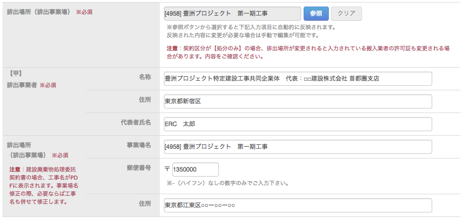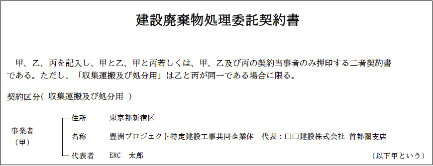 「【甲】排出事業者」を修正いただくことで、契約書PDFでは以下のように表示されます。