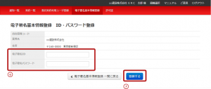 ※「電子署名ID」「電子署名パスワード」は「半角英数字」です。入力間違いにご注意ください。