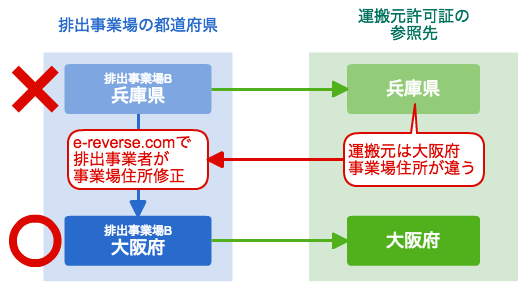 ・排出事業者がe-reverse.comの排出事業場の住所を「大阪府」に変更する