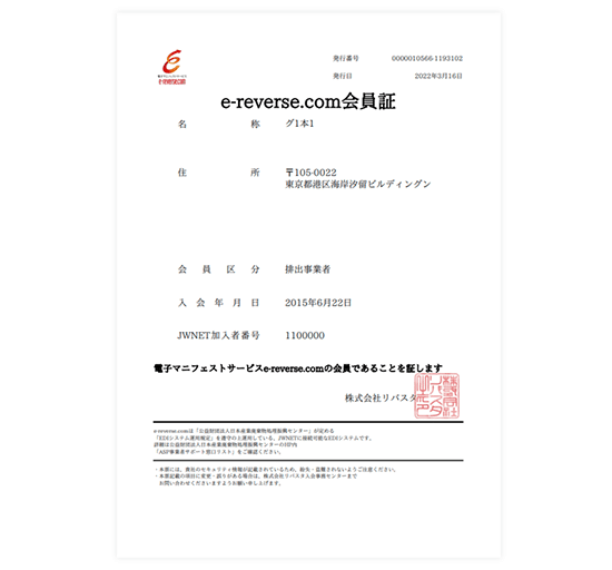 e-reverse.comのシステム上にご登録されている会社情報に間違いがないか必ずご確認ください。